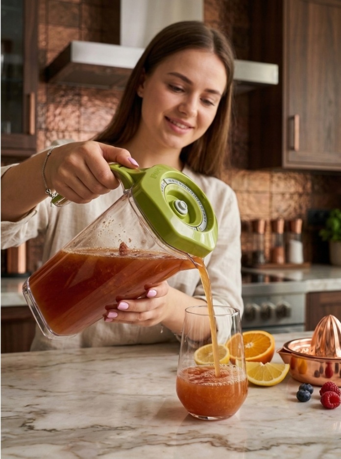 Dzięki dołączonej pompce usuwasz powietrze z wnętrza dzbanka, ograniczając proces utleniania. To sprawia, że napoje dłużej zachowują smak, aromat i wartości odżywcze.